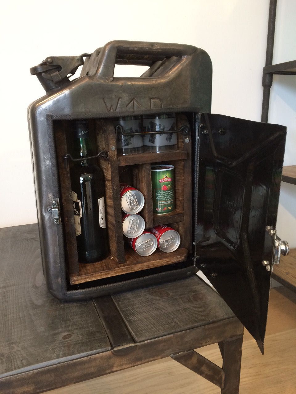 Bar jerrican réalisé dans un jerrican anglais de la seconde guerre.
